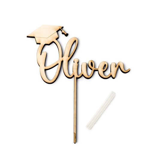 Cake topper Graduación madera personalizado 1 nombre 15cm.