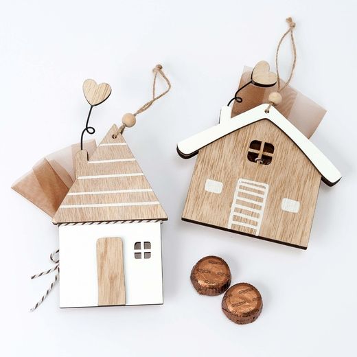 Prodotti simili a Colgante madera casa marrón surtido con 1 bombón, min.8