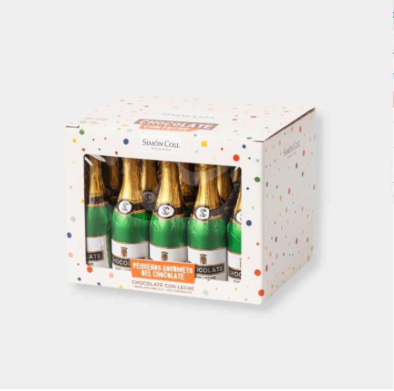 Le grandi bottiglie di cioccolato Cava Simon Coll sono bottiglie di cioccolato al latte incartato. Sono realizzati con il 30% di cacao e realizzati con il tradizionale sistema di tostatura delle fave di cacao. Misurano 13 cm x 3,75 cm e pesano 40 grammi ciascuno. Sono venduti in barattoli da 20un.