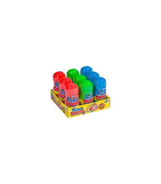 I CHUPA THUMB DIPPERS sono caramelle da succhiare e con pica pica. Venduto in una scatola di 24 unità. Senza Glutine Questi dolci sono ideali per addolcire le vostre feste di compleanno, creare le vostre torte più divertenti o per realizzare il noto Candy Bar, attualmente molto in voga tra le celebrities.
